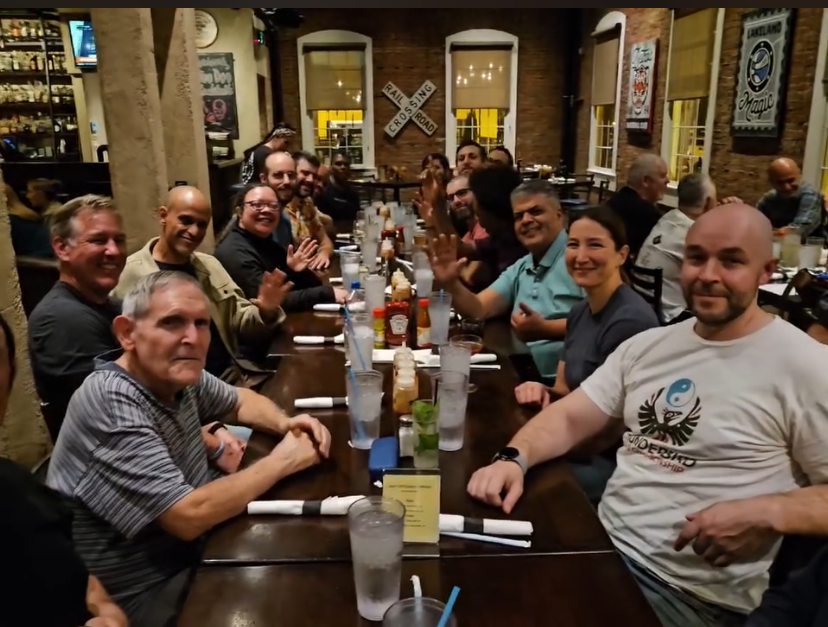 We organized our 3rd road trip down to Florida to join the Tampa Bay MA group Push Hands retreat that happens each Fall and Spring in Lakelands, Florida. We went last November and had a great time. We once again rented a van and a nearby house. We drove down Thursday night to join the festvities and the Friday evening welcome dinner.